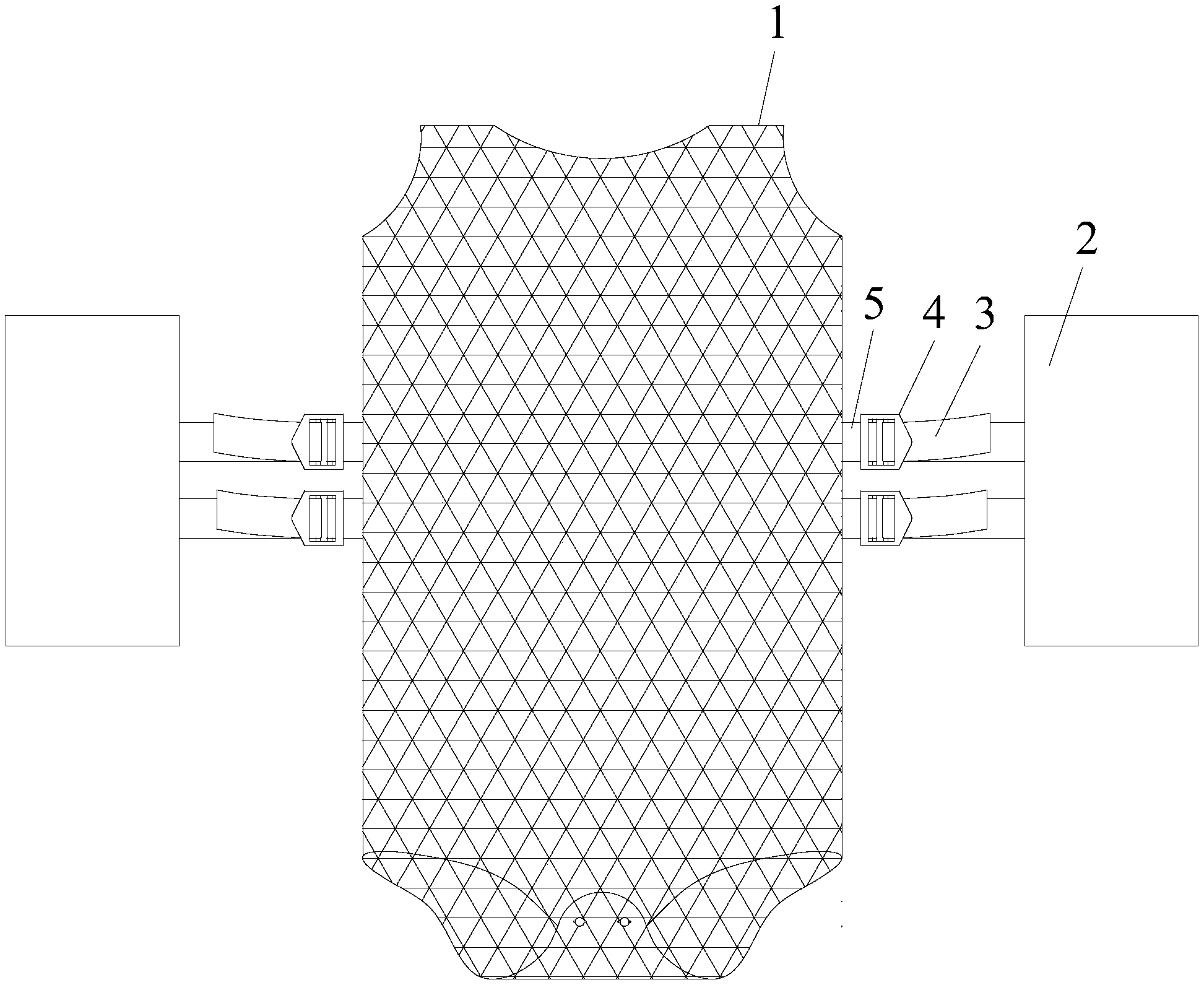 | 摘要: | 本实用新型公开了一种安抚睡袋,包括背心式睡袋和位于背心式睡袋左右侧的二弹性袖体,背心式睡袋和二弹性袖体为分体式结构,所述的二弹性袖体与背心式睡袋的上下方向平行,二弹性袖体的上下两端均为敞口自由端,二弹性袖体的中部与背心式睡袋左右侧均分别通过长度可调节的松紧带连接。本实用新型的安抚睡袋能增加安全感,使用舒适。 | ||||