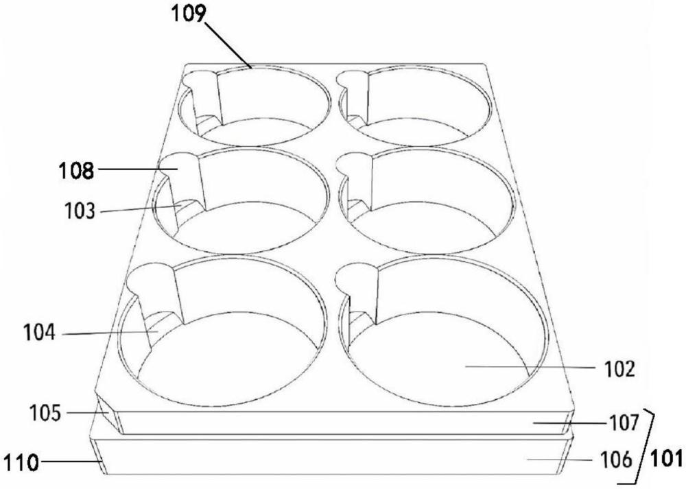 | 摘要: | 本实用新型公开了一种缓冲型细胞培养板,包括培养板主体、可与所述培养板主体活动装拆的板盖,所述培养板主体设置有至少一个细胞装载槽,所述培养板主体上还设置有与所述细胞装载槽相连通的缓冲槽,所述缓冲槽的槽底设置有缓冲平台,所述缓冲平台的底面高于所述细胞装载槽的槽底,所述缓冲平台的底面与所述细胞装载槽的槽底连接有斜坡。在每个细胞装载槽的右上角处设置缓冲槽,在缓冲槽的槽底设置有缓冲平台,缓冲平台与细胞装载槽的槽底连接有斜坡,在给细胞更换培养基的过程中,实验人员可以直接往缓冲槽悬空滴加培养液,减少了培养基加注时产生的冲击力对细胞的造成损伤,增加细胞的生存率,从而提高实验成功的机率。 | ||||
