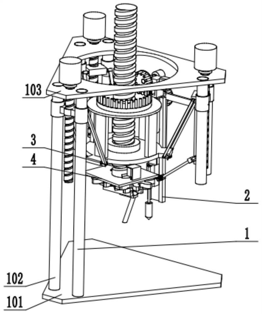 | 摘要: | 本发明公开了一种肝癌局部消融腹腔镜插入装置,包括移动机构、开孔机构、升降机构、定位机构,移动机构的作用是通过转杆的转动,使托架在大致方向上的位置准确,开孔机构是通过齿轮啮合,带动皮带转动,带动螺纹刀通过螺旋下降的方式将皮肤开口,便于腹腔镜的进入,升降机构的作用是通过丝杠的运动控制腹腔镜下降的高度,便于手术的操作,定位机构通过导管滑块在涡轮槽内滑动,带动腹腔镜涡轮转动,便于精准定位。该肝癌消融腹腔镜插入装置结构简单,操作安全、自动化程度高。 | ||||
