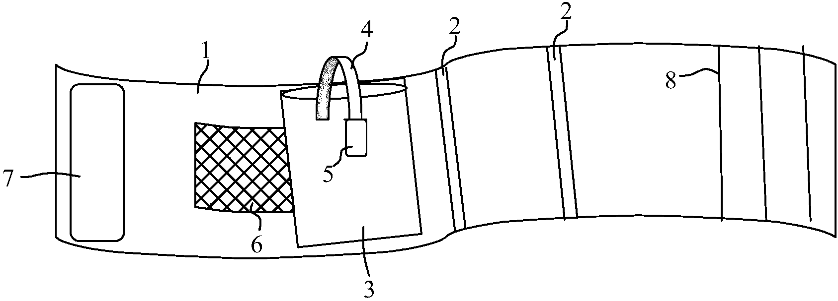 | 摘要: | 本实用新型公开了一种一次性颈内静脉导管防脱带,用于医疗器械技术领域,包括可绕在患者颈部的带体,带体的两端设有连接结构,带体分段设置,相邻两段带体之间采用弹性条过渡连接,带体上设有放置口袋,放置口袋的顶部袋口处设有可固定导管的细带,带体上于放置口袋的一侧设有观察窗。本实用新型在带体上设置放置口袋,颈静脉导管在消毒包扎好后,先置于放置口袋内,然后将细带绕过导管弯曲的上端包裹好,防止导管向上脱出。此外,通过带体上的观察窗又可以在透析过程中方便观察导管口有无渗血、缝线是否牵拉。价格低廉,无需反复清洗,可以减少胶布使用,增加敷料的透气性,提升患者的舒适感并有效减少脱管事件。 | ||||