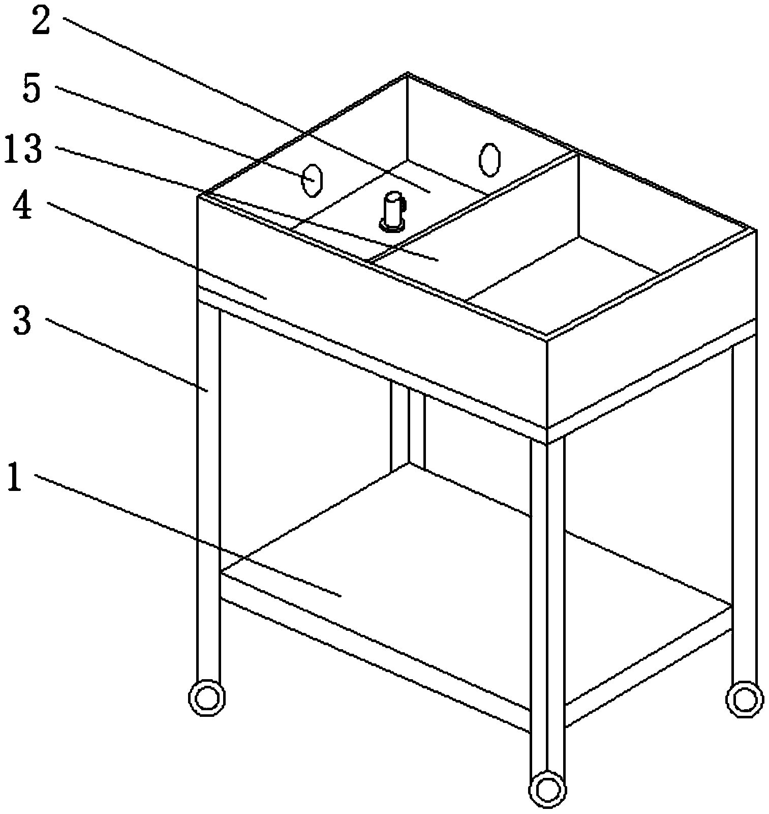 | 摘要: | 本实用新型公开了一种结合消毒和冷却功能的手术器械用放置架,包括置物台一、置物台二、支撑腿和挡板,所述置物台二的顶部与挡板的底部固定连接,挡板的内侧表面固定连接有隔板,且所述挡板的内壁和隔板的侧面均固定连接有磁铁块,所述置物台二的底部与支撑腿的顶部固定连接,且四个所述支撑腿之间固定连接有置物台一,所述置物台二包括底板,所述底板的两端设有紫外线灯,所述底板的顶部固定连接有底座,所述底座的上表面转动连接有消毒冷却装置。本实用新型通过上述等结构之间的配合,使手术器械可整齐收纳、方便拿取、冷却均匀且冷却速度快,能够在手术过程中最大限度地避免伤口感染,提高了手术的便利性,使用效果相比于传统手术器械用放置架更好。 | ||||