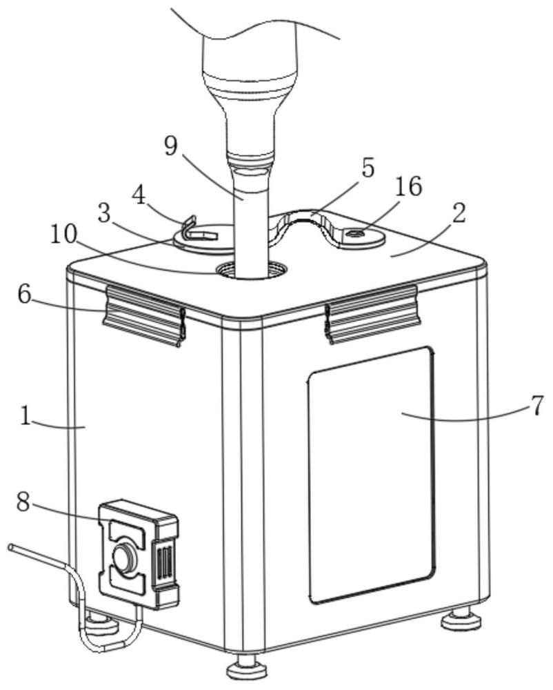 | 摘要: | 本发明提供一种阴超探头自动戴套装置,属于阴道B超技术领域。包括无菌盒和阴超探头,所述无菌盒的顶部套设有第一封闭盖,所述第一封闭盖的中部开设有与所述阴超探头的大小相适配的插入口,且所述第一封闭盖的下方固定连接有安装架,所述安装架中套设有存储盒和存储筒。本发明通过设置拉扯组件和存储筒,使得该阴超探头自动戴套装置能够在保证卫生的前提下,预先将撕开包装的保护套堆叠存储在存储筒中,并依靠拉扯组件将存储筒中堆叠的保护套逐个拉出并形成绷紧状态,只需直接向装置中插入阴超探头即可自动完成对阴超探头的戴套操作,使得阴超探头的戴套操作简单便捷,且不会产生交叉感染,符合医疗卫生规范。 | ||||