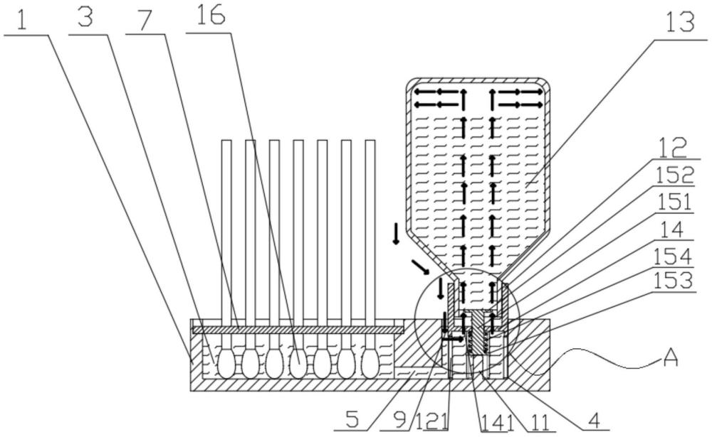 | 摘要: | 本实用新型提供一种消毒棉签快速浸润装置,以解决目前医护工作中消毒棉签使用操作繁琐,浸润度差的问题。包括包括浸润底座、插设于浸润底座上的补液密闭机构和旋接于补液密闭机构上的储液瓶,所述浸润底座一侧设有浸润池,浸润池顶部盖设有棉签定位板,其另一侧设有安装口,所述安装口与浸润池之间连通有进液管,所述补液密闭机构安装于安装口处。当浸润池内的消毒液因浸润棉签减少时,浸润池与安装口内液面下降,出液筒上的进气孔露出,补液密闭机构进气出液,待液面再次没过进气孔后,出液停止,完成自动补液。省去了医护人员反复补充消毒液的麻烦。需补充棉签时,直接将未浸润棉签插入棉签定位板中即可,提高了消毒棉签的使用效率和浸润效率。 | ||||