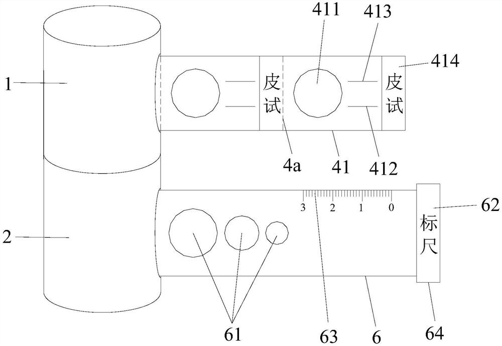 | 摘要: | 本实用新型公开了一种皮试标尺,包括上下堆叠且连接为一体的上筒体和下筒体,所述上筒体内有竖向布置且可取出的上转轴,上转轴处套装有贴纸卷,贴纸卷由多个首尾相接的贴纸构成,每相邻的两个贴纸之间有点断式撕开线,各贴纸上开有圆孔,各贴纸的正面在圆孔旁印有可分别填写皮试时间和皮试药名的横线一、横线二;下筒体内有竖向布置的下转轴,下转轴上卷绕有扭簧和标尺,扭簧的一端固定在下转轴上,扭簧的另一端固定在标尺的一端,标尺的另一端贯穿伸出下筒体外,标尺上印有刻度。本实用新型的皮试标尺不易遗忘皮试时间,能准确测量皮丘的直径。 | ||||