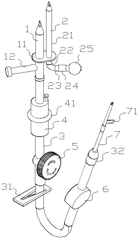 | 摘要: | 本实用新型涉及输液用具领域,尤其涉及一种精密输液器,包括第一穿刺头,该输液器主要通过向瓶体内注入气体进行增压,可简化结构,有效降低成本。所述第一穿刺头上设有挡板,所述第一穿刺头一侧的挡板上固定设有竖向的第二穿刺头,第二穿刺头底部通过弯头连接第一接头,第一接头上连接第一单向阀,第一单向阀右侧可拆卸设有充气结构;第一穿刺头下方与输液管顶部相连接,输液管上端部下方设有滴管,所述滴管下游设有滴数调节器,滴数调节器下游还设有圆形空气过滤器,空气过滤器下端部的输液管末端通过转换接头连接细管,细管末端连接穿刺针。它操作简单,使用方便,适用于多种患者。 | ||||