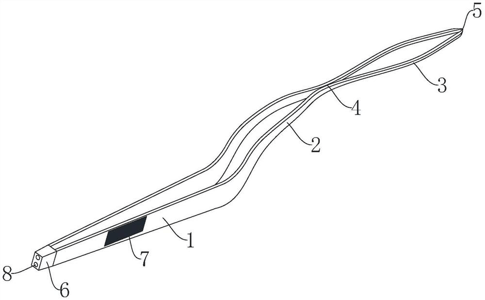 | 摘要: | 本实用新型公开了一种S形微创双极电凝镊,包括手捏臂、S形第一镊子臂、S形第二镊子臂、接触点、镊子头部、电极插头、防滑壁和插孔,该电凝镊创新性的将镊子的双臂设计成是S形结构,待使用状态时的镊子头部相互靠拢,双臂之间的距离小可适合伸入到狭小的空间工作,将电极插头与电源连接后,将该电凝镊伸到手术区域时,通过手指内捏手捏臂的防滑壁部位,接触点将镊子头部分开一定的距离,启动电凝开关,即可电凝止血,相对一般镊子是用于夹物体,该S形微创双极电凝镊通过靠镊子前端的间隔距离起电凝作用,因而术中不要靠双臂合拢的力量,可减小双臂的距离,更加适合微创手术非常实用方便,在行业内微创手术中具有实际的应用和推广价值。 | ||||