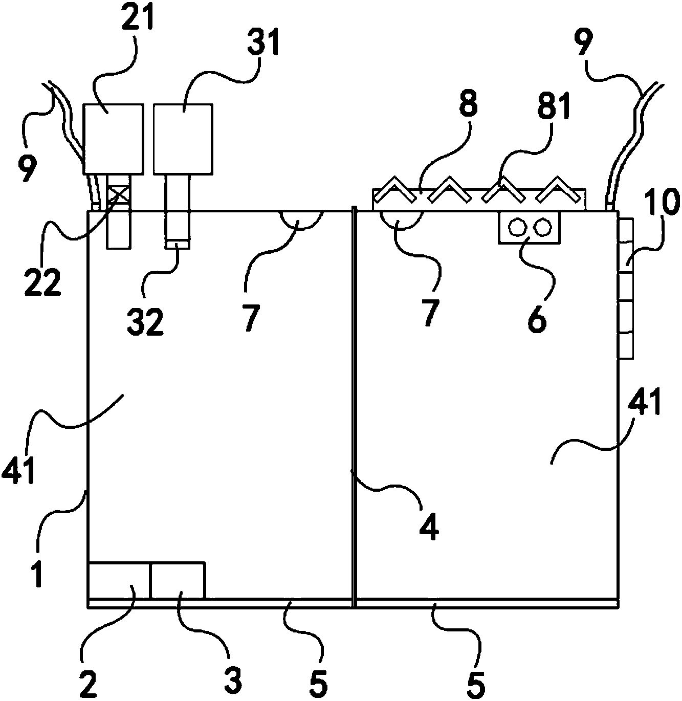 | 摘要: | 本实用新型公开了一种动物饲养装置,属于动物培养技术领域,其包括饲养笼,饲养笼的内部下方设有可移动的饲料槽和水槽,饲养笼的内部设有播放器,饲养笼的顶端设有条形孔,饲养笼的内部底端设有与条形孔对应的凹槽,条形孔和凹槽中插有隔板,隔板将饲养笼分隔成至少2个饲养室;饲养室的底部铺设有垫料,饲养室的上方设有照明灯。本实用新型的动物饲养装置功能齐全,可以实现多种实验操作,从而更好地构建肝郁证动物模型。 | ||||