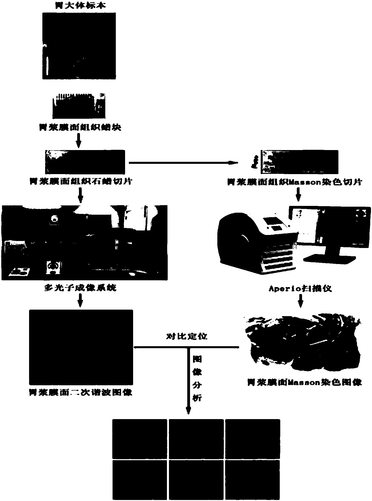 | 摘要: | 本发明提供了一种胃癌切除标本的胃浆膜表面胶原组织评价方法,涉及病理鉴别技术领域,本发明通过Masson染色结合多光子成像分析对胃癌切除标本的胃浆膜表面胶原进行组织评价,本发明将两种胶原分析方式结合在一起,能快速、简便、精确的对胃浆膜表面胶原进行分析,有助于临床工作者了解患者胃癌浆膜表面胶原情况,在评估胃癌患者的肿瘤恶性程度、转移及复发的可能性大小方面具有重要参考价值。本发明设计合理,技术成熟,简便易行,具有广阔的临床应用前景和良好的科研推广价值。 | ||||