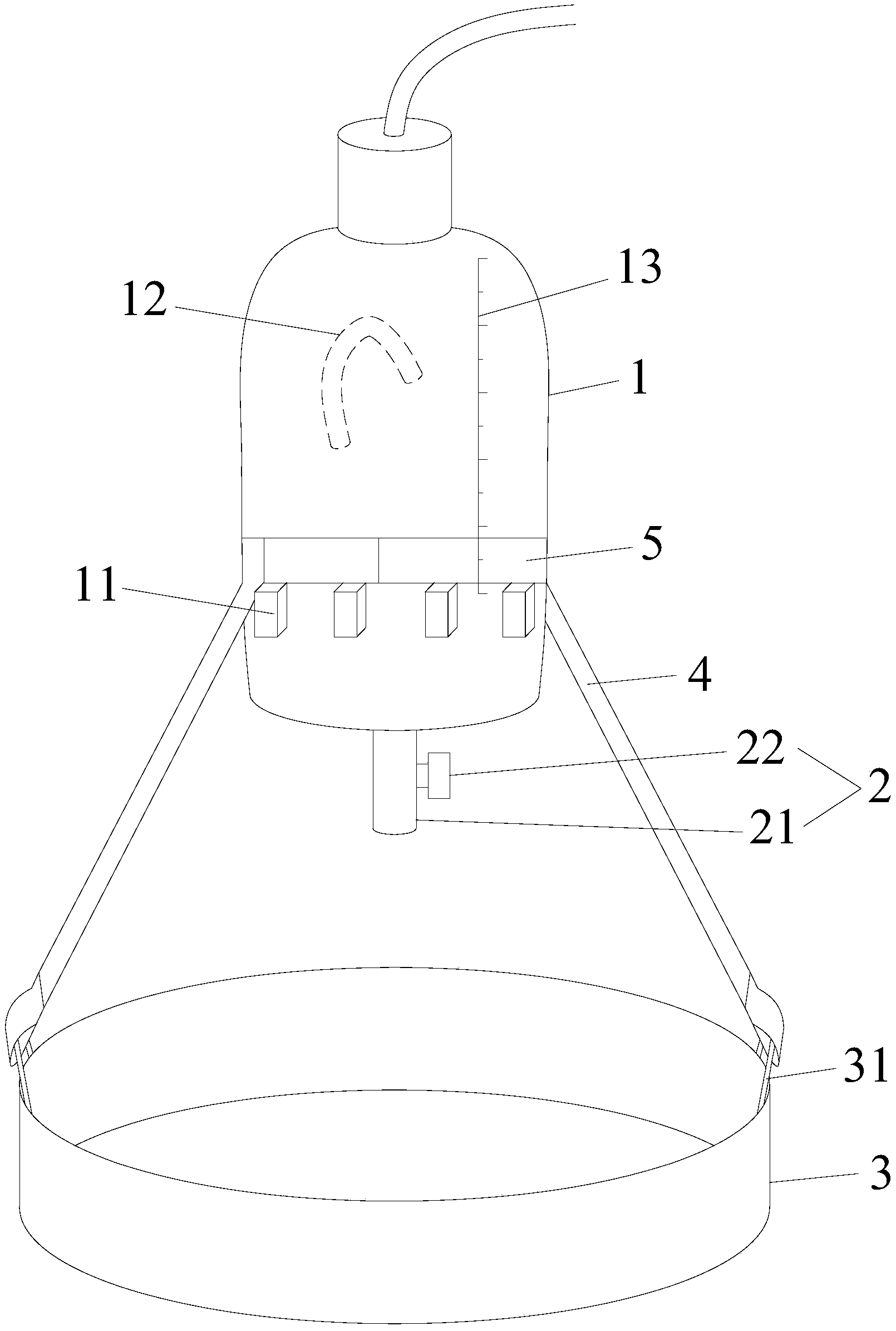 | 摘要: | 本实用新型公开了一种方便留取标本及取放的负压引流瓶,包括瓶体,瓶体底部装有排放阀,还包括位于排放阀和瓶体下方的防溅洒盒,所述防溅洒盒的上端两侧连接有连接带,两个连接带的上端分别连接一个半环带,两个半环带相互可拆卸连接并且紧固套装在瓶体外围,防溅洒盒与排放阀之间有取标本空间。本实用新型的方便留取标本及取放的负压引流瓶防止引流液溅洒于地上,保持地面清洁,解决了环境污染和卫生隐患的问题。 | ||||