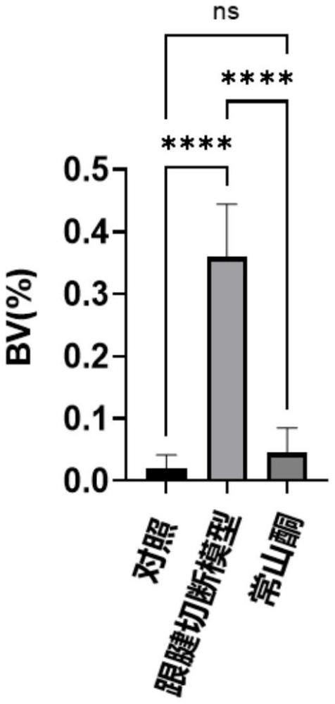 | 摘要: | 本发明属于医药技术领域,特别涉及一种常山酮在制备治疗异位骨化的药物中的应用。本发明提供了一种常山酮在制备治疗异位骨化的药物中的应用。通过影像学观察、组织学切片染色结果观察、血管荧光染色观察,阳性对照组在小鼠跟腱处有明显骨质增生,存在骨质结构形成,在骨质形成区有明显软骨形成,在异位骨化小鼠跟腱处有明显的血管形成,而常山酮给药组则未见明显的骨质增生,未见明显骨质形成及软骨堆积,在异位骨化小鼠跟腱处则未见明显血管形成。说明常山酮具有良好的改善骨质形成,软骨堆积及血管形成的效果,即说明常山酮具有良好的抗异位骨化的效果。 | ||||