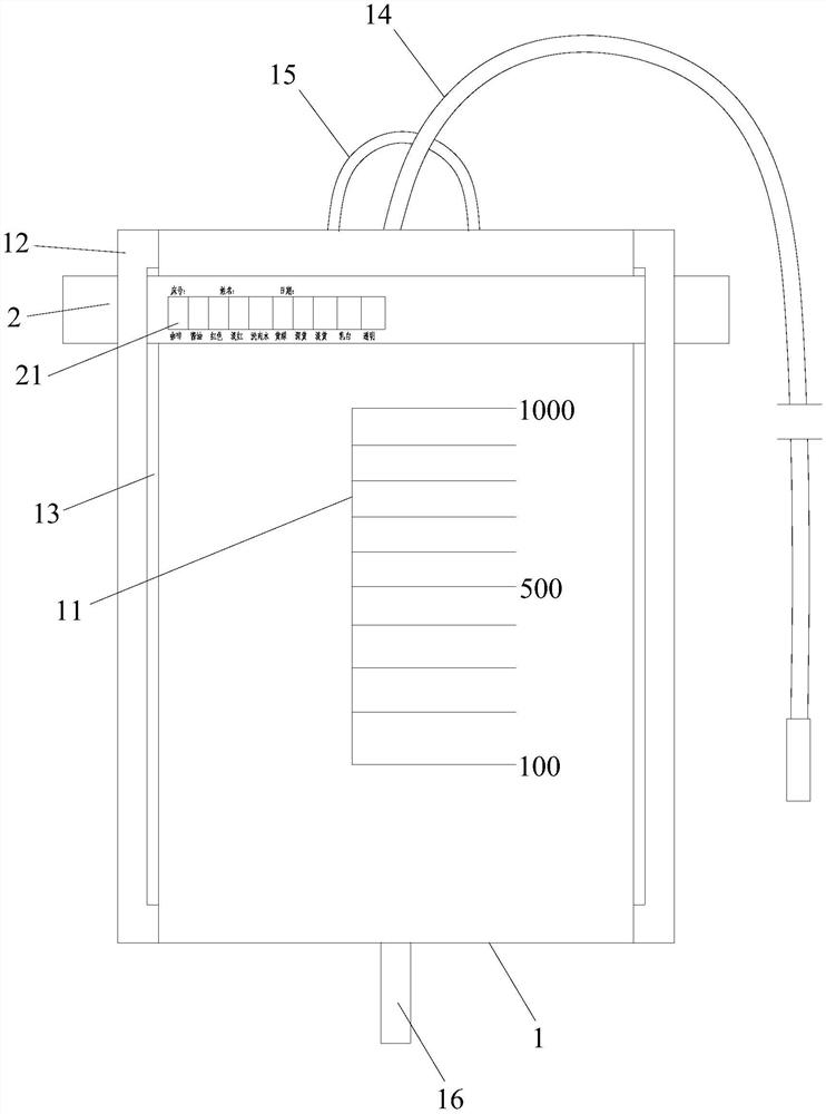 | 摘要: | 本实用新型公开了一种带标尺引流袋,包括袋体,袋体的前侧面印有刻度,所述袋体的左右两侧分别朝左右方向延伸形成延伸部,袋体左侧的延伸部与袋体的左侧之间、袋体右侧的延伸部与袋体的右侧之间均有滑槽,还包括标尺,标尺位于袋体的前侧面,标尺的左、右两端可上下移动地分别插入袋体左侧、右侧的滑槽内,标尺的左、右两端分别与袋体左、右侧的延伸部磁吸固定。本实用新型的带标尺引流袋便于临床实践工作。 | ||||