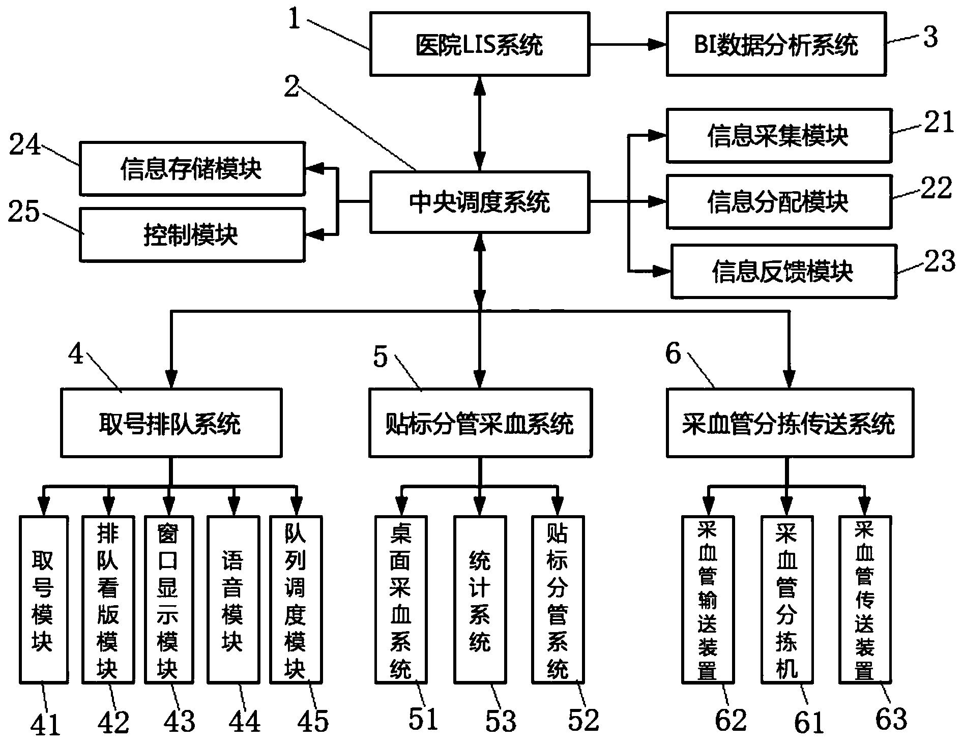 | 摘要: | 本发明公开了一种智能采血管理系统及其管理方法。一方面,一种智能采血管理系统,包括医院LIS系统;与所述医院LIS系统连接并且相互之间能够进行信息交互的中央调度系统,以及,与所述医院LIS系统连接并且能够对医院LIS系统的信息资源进行采集、处理和管理的BI数据分析系统;还包括分别与所述中央调度系统连接并且能够与中央调度系统进行信息交互的取号排队系统、贴标分管采血系统和采血管分拣传送系统。另一方面,本发明还提供了一种采用上述智能采血管理系统的管理方法。本发明具有取号方式多样化且排队管理有序,能够自动进行试管选管、贴标、核收、分拣以及传输,能够对采血业务数据进行精细化管理等优点。 | ||||