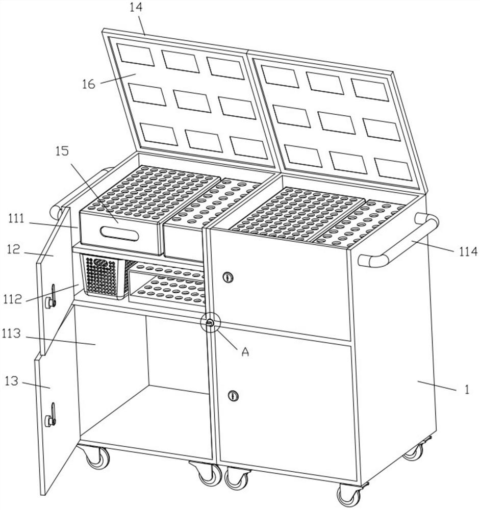 | 摘要: | 本实用新型提出一种医用标本收集柜,包括两个柜体和连接件,两个柜体对称设置,连接件位于两个柜体之间,两个柜体相互贴合,两个柜体的贴合面上均设有固定槽与第一固定位,第一固定位收容于固定槽内,两个固定槽之间相互导通,连接件上设有两个第二固定位,连接件部分收容于固定槽内,两个第二固定位分别与两个第一固定位一一对应,第二固定位与第一固定位抵接;两个柜体通过连接件牢牢地固定在一起,而两个柜体的总重量则使得本医用标本收集柜不容易被推动导致移位;本医用标本收集柜有效地避免了柜体在行走病患的干扰下容易分离移位的情况发生,同时也便于患者存放标本。 | ||||