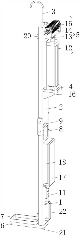 | 摘要: | 本实用新型公开了一种可折叠的紫外线灯管强度测试架,包括下支架,支架的顶部固定有挂钩,支架的底部连接有放置板,所述支架为可折叠式支架,支架的侧面固定有支板,支板的顶部固定连接有可升降的清洁机构。本实用新型具备能够对测试架进行折叠收纳及具有清洁功能的优点,解决了现有的紫外线灯管强度测试架在使用过程中,通常不具有清洁功能,导致无法根据实际使用情况对紫外线灯管的表面进行清扫处理,从而影响后续的强度检测效果,且由于结构单一,不能对测试架进行折叠收纳,降低了紫外线灯管强度测试架适用性的问题。 | ||||