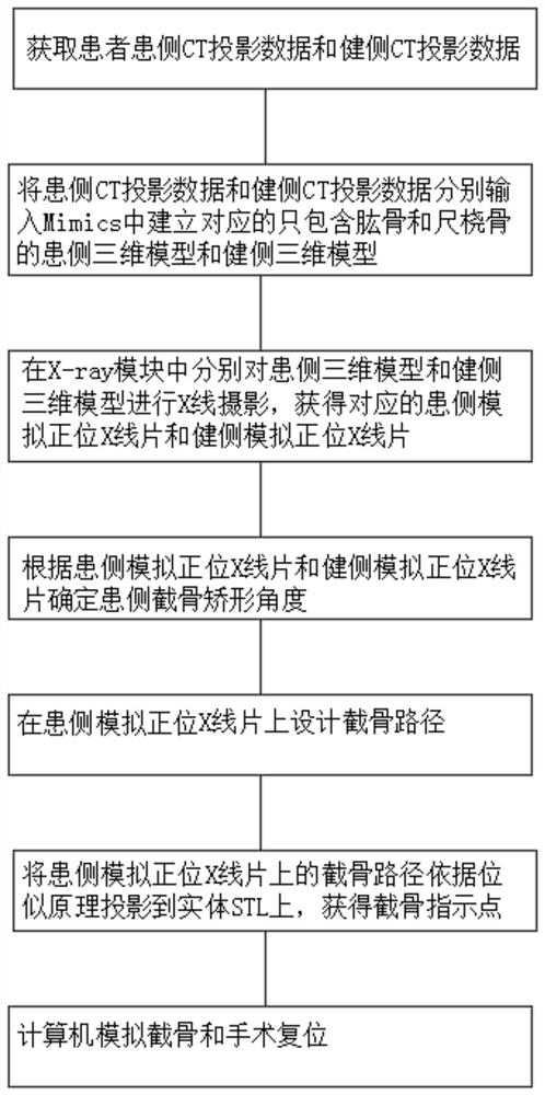 | 摘要: | 一种基于Mimics的计算机模拟双楔形截骨方法,包括:获取患者患侧CT投影数据和健侧CT投影数据;将患侧CT投影数据和健侧CT投影数据分别输入Mimics中建立对应的只包含肱骨和尺桡骨的患侧三维模型和健侧三维模型;在X‑ray模块中分别对患侧三维模型和健侧三维模型进行X线摄影,获得对应的患侧模拟正位X线片和健侧模拟正位X线片;根据患侧模拟正位X线片和健侧模拟正位X线片确定患侧截骨矫形角度;在患侧模拟正位X线片上设计截骨路径;将患侧模拟正位X线片上的截骨路径依据位似原理投影到实体STL上,获得截骨指示点;计算机模拟截骨和手术复位。该方法能够提高提携角的测量精度,有效降低侧方位移量,增加骨面接触面积,提高骨接触稳定性,降低骨不连接率。 | ||||