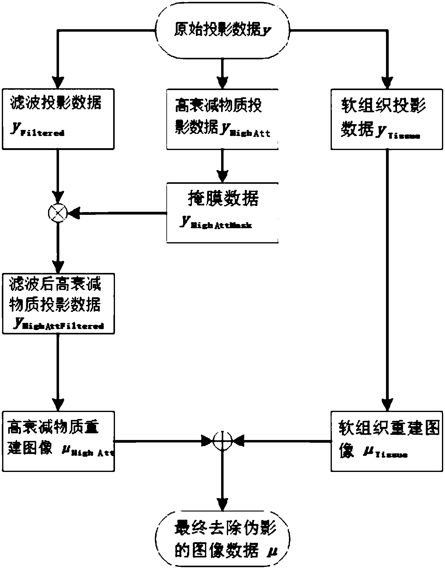 | 摘要: | 一种数字层析成像系统的图像伪影去除方法,包括如下步骤:A1、获取数字层析成像系统的原始投影数据y,A2、分割,对原始投影数据y进行分割,A3、将高衰减物质投影数据y HighAtt 生成掩模数据y HighAttMask 。A4、滤波,对原始投影数据y进行滤波操作,A5、重建,将软组织投影数据y Tissue 重建得到软组织重建图像μ Tissue 。对高衰减物质投影数据y HighAttFiltered 进行重建,得到高衰减物质重建图像μ HighAtt ,A6、获得最终图像,将没有伪影的总高衰减物质重建图像μ HighAtt‑FreeArtifacts 与软组织重建图像μ Tissue 求和得到最终去除伪影的图像数据μ。 | ||||