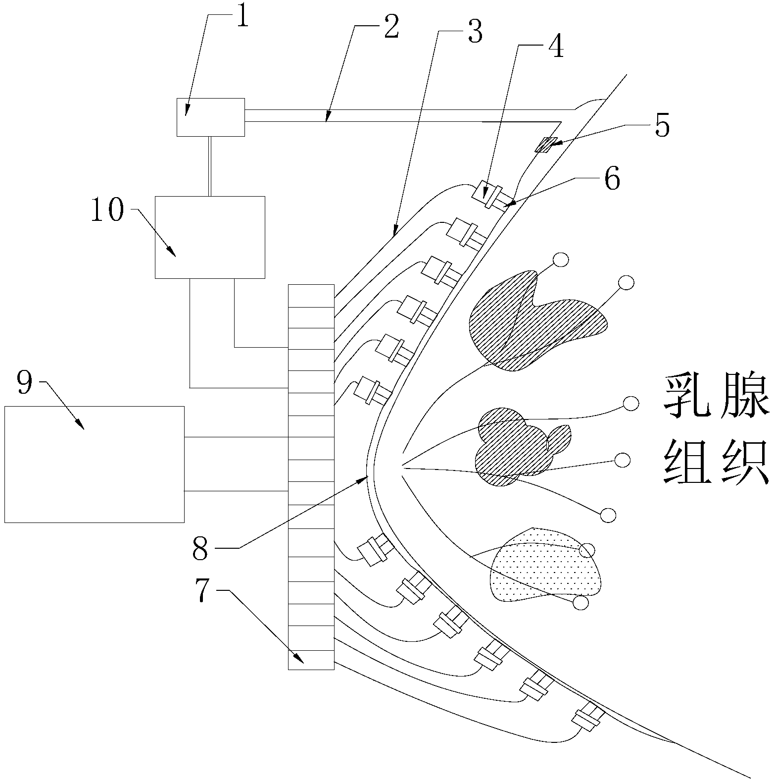 | 摘要: | 本实用新型涉及一种负压式乳腺组织介电参数检测装置,所述检测装置包括设置在柔性组件外侧的射频信号收发装置、微控制器、吸气装置、射频开关阵列和射频连接器,以及嵌入在柔性组件上的至少一个同轴探头,所述吸气装置与微控制器连接,微控制器与射频开关阵列连接,射频连接器分别与射频开关阵列和同轴探头连接,射频开关阵列与射频信号收发装置连接;柔性组件用于包裹被测乳腺组织并与被测乳腺组织之间形成密闭空间;微控制器控制吸气装置和控制射频开关阵列,同轴探头检测被测乳腺组织的介电参数。本实用新型具有能够使得同轴探头紧贴于被测乳腺组织表面,一次性测量获得被测乳腺组织的不同区域的介电参数,操作方便,节约时间。 | ||||