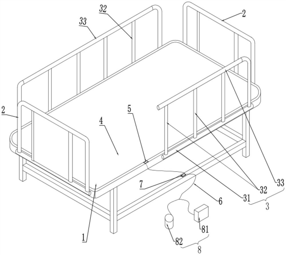 | 摘要: | 本实用新型公开了一种用于预防患者跌倒的提醒装置,包括床体,在所述床体的床头部和床尾部均设有防护靠板,在所述床体的两侧端均设有防护栏;在其中一侧端的防护栏上开设有一供患者上下床的出入口,在所述床体上且位于所述出入口的一端嵌设有红外感应开关,所述红外感应开关通过导电线经一电源开关连接有提醒器。本实用新型具有使用方便、在危重患者离床时能够向医护人员发出警报提醒的优点。 | ||||
