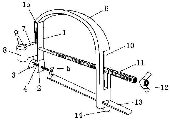 | 摘要: | 本实用新型提出了一种喙锁韧带重建器,以用于在微创情况下完成肩锁关节复位及喙锁韧带重建,减少患者创伤,降低手术难度。该喙锁韧带重建器包括复位杆,复位杆的底端设有用于夹紧锁骨的复位钳,复位杆的顶端与C型柄的一端铰接,复位杆设有可沿复位杆轴向移动的移动块,移动块通过转轴安装有定位块,定位块上间隔设有两个定位通道;C型柄在远离复位杆的一端设有条形通孔,复位杆的侧部固定安装有调节螺杆,调节螺杆穿过C型柄的条形通孔,调节螺杆的端部设有调节螺母;C型柄在条形通孔的下方设有朝向于复位杆方向的导板通孔,导板通孔活动安装有导板,C型柄在导板通孔的旁侧安装有导板锁紧螺栓,所述导板锁紧螺栓伸入到导板通孔内。 | ||||