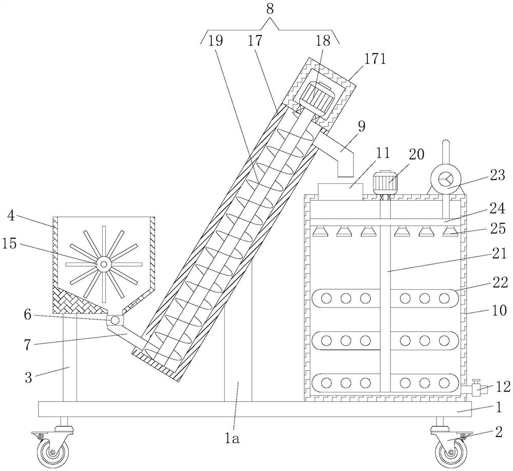 | 摘要: | 本实用新型公开了一种具备自动上料功能的配药设备,包括箱体、安装于箱体顶部的第三电机、贯穿箱体顶部伸入箱体内腔内的转杆和设置转杆表面的若干个搅拌叶,还包括高度低于箱体高度的框体、设置于框体内的预混机构和将框体内预混合的原料自动上料至箱体内的倾斜的输送机构,框体的顶部加药口低于箱体的顶面。本实用新型使得配液更均匀,同时提高工作效率。 | ||||