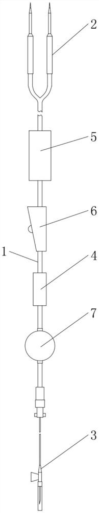 | 摘要: | 本实用新型公开了一种改良的输液管。一种改良的输液管,包括输液管、设于所述输液管上端的输液接头、设于所述输液管下端的头皮针,在所述输液管上设有第一茂菲氏滴管,在靠近所述第一茂菲氏滴管出液端的输液管上设有能够调节所述第一茂菲氏滴管内输液快慢的调节器,其中,在靠近所述调节器出液端的输液管上设有内部容量比所述第一茂菲氏滴管小的第二茂菲氏滴管。本实用新型一种改良的输液管,能够有效避免回血和降低患者恐惧感。 | ||||