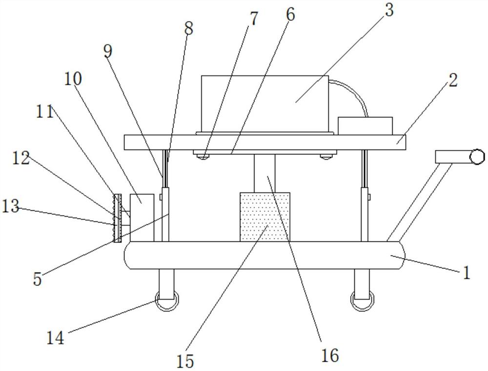 | 摘要: | 本实用新型涉及医疗设备领域,公开了一种用于抑郁症脑功能连接改变检测的CTMRI图像辅助系统。本实用新型中,所述固定螺杆的顶部末端通过螺纹连接有放置台;所述固定基座的上表面位于所述升降电机的左右两侧焊接有升降套管,所述升降套管的内壁开设有限位槽,所述限位槽的内部滑动连接有限位杆;所述固定基座的上表面前端焊接有减震基座,所述减震基座的内部后方焊接有滑动杆,所述滑动杆的表面套接有滑动块,受到震动时使得减震弹簧产生弹性形变,从而对振动进行缓冲,提高了该装置的稳定性,避免了辅助系统本体内部的精密仪器受到过多震荡产生损坏,从而提高了该装置的使用寿命。 | ||||