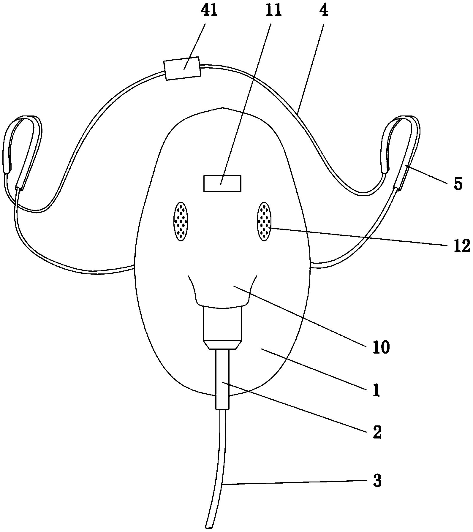 | 摘要: | 本实用新型公开了一种带耳朵防护装置的吸氧面罩。一种带耳朵防护装置的吸氧面罩,包括面罩本体、吸氧管,其中,所述面罩本体的前端设有吸氧口,所述吸氧管装设在所述吸氧口内,并且,该吸氧管通过一供氧管与外设供氧器连接;所述面罩本体的两侧设有系带,所述系带上均装设有耳朵防护装置,其中,所述两个系带的前端穿过相应耳朵防护装置后系在一起。本实用新型一种带耳朵防护装置的吸氧面罩,具有不易脱落并且能够保护患者耳道上沿皮肤等效果。 | ||||