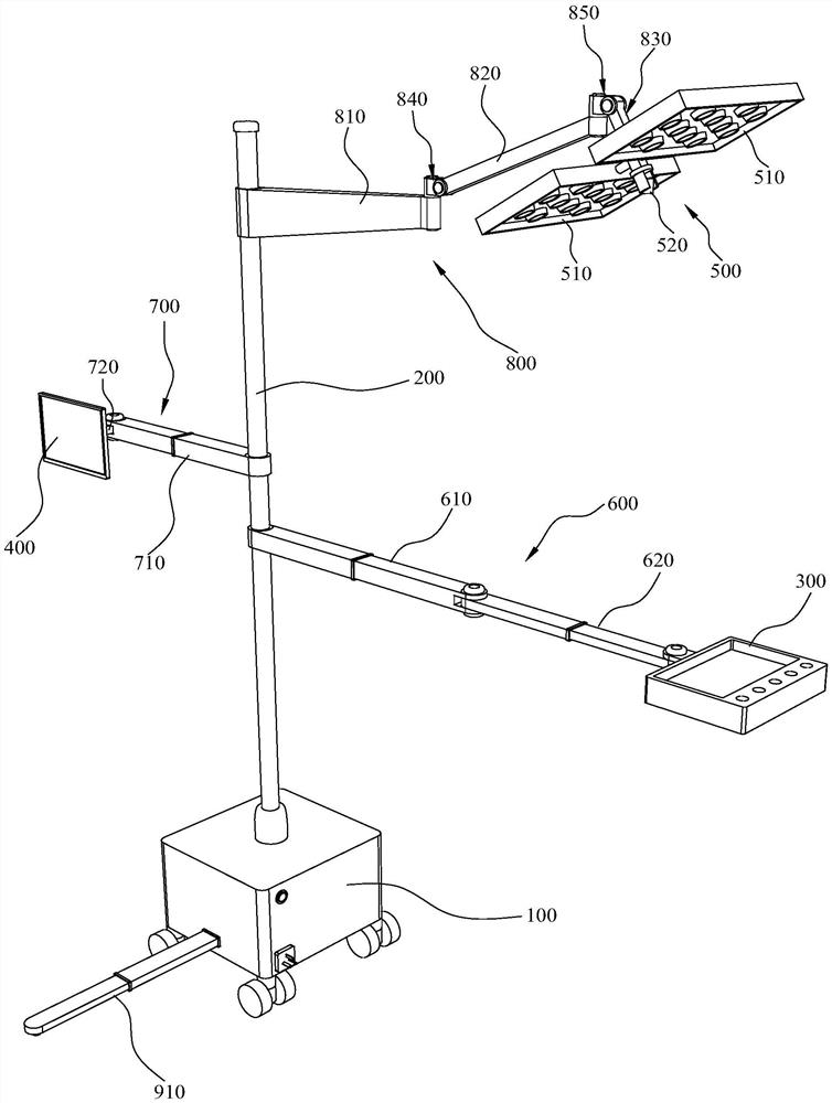 | 摘要: | 本实用新型公开一种智能植发外设平台,包括:基座和安装于基座上的主杆;由下至上依次设置的托盘结构、显示器以及照明摄像结构,托盘结构通过第一连杆与主杆连接,显示器通过第二连杆与主杆连接,照明摄像结构通过第三连杆与主杆连接;控制器,与驱动机构连接,用以控制第一连杆、第二连杆和第三连杆活动以调节托盘结构、显示器和照明摄像结构的位置。与现有技术相比,本实用新型的智能植发外设平台集成了自体毛发移植术当中可能使用到的多种设备,为植发手术提供了便利。 | ||||