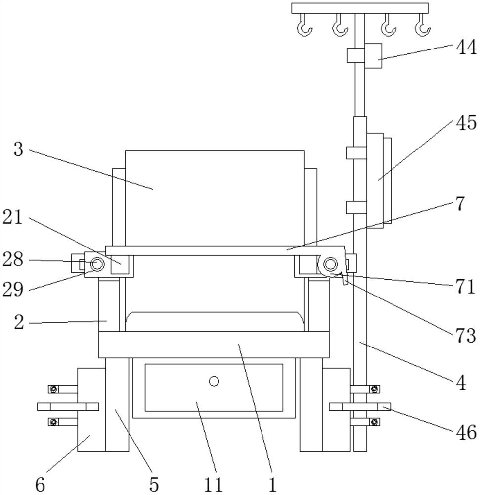 | 摘要: | 本实用新型公开了一种多功能输液椅。一种多功能输液椅,包括椅座、扶手、椅背和输液架,其中,在所述椅座的底部设有支脚,在两个靠近所述椅座后部的支脚上沿竖直方向设有能够固定所述输液架的固定组件,所述扶手设置在椅座的左右两侧上,在所述扶手的前端可拆卸装设有桌板,所述椅背通过一角度调节器与椅座的后端铰接在一起。本实用新型一种多功能输液椅,泛用性强,操作简单方便并且有利于不同患者使用。 | ||||