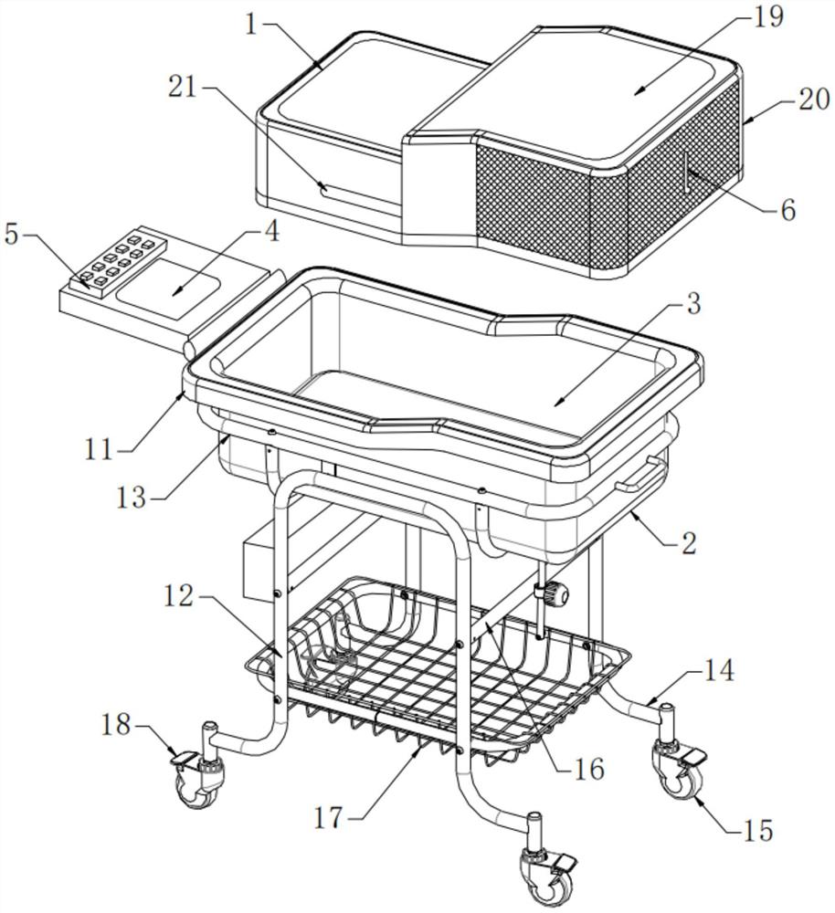 | 摘要: | 本实用新型涉及婴儿车技术领域的智能化安全型新生儿车,包括防护外壳和盆体,所述盆体的内部设有用于对新生儿进行容纳的容纳腔,盆体的表面设有显示屏,显示屏电性连接有用于进行显示操作的操作台,防护外壳的内表面安装有用于进行温度调节的控温组件,通过操作台进行数据操作,从而使显示屏显示新生儿的具体资料,比如:性别、年龄、血糖、血氧、母乳喂养或人工喂养时间、是否经过乙肝接种、听力筛查和疾病筛查等具体数值,从而便于医务人员对新生儿的情况准确做出判断,避免影响就诊时间;通过操作台对控温组件进行温度调控,使容纳腔温度降低或使容纳腔温度升高,从而到达控制温度的效果。 | ||||