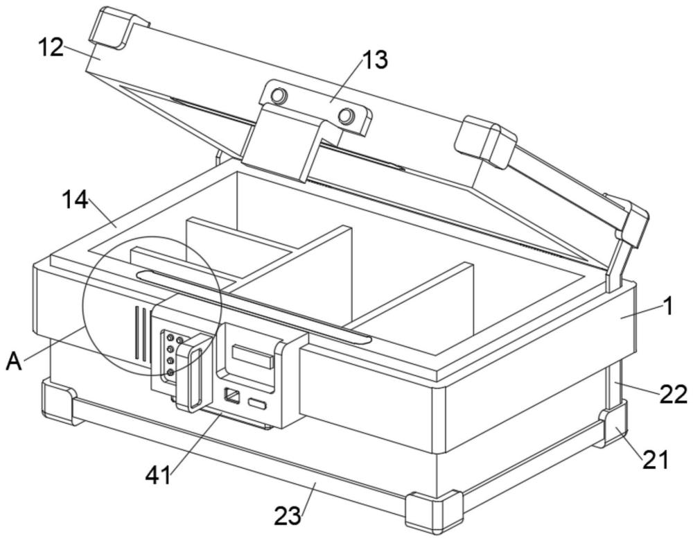 | 摘要: | 本实用新型涉及麻醉药盒保护技术领域,具体地说,涉及一种可兼容的麻醉药盒保护报警装置。包括保护带本体,保护带本体缠绕在麻醉药盒本体的表面,麻醉药盒本体由上盖和下盒组成,上盖的表面安装有安全扣,保护带本体为加厚材质,保护带本体的端部连接有锁扣组件,锁扣组件的内部设有警报组件,保护带本体的表面连接有防护组件。本实用新型通过缠绕在麻醉药盒本体外壁的保护带本体和其表面延伸的防护组件,可对麻醉药盒本体进行辅助防护,利用锁扣组件,可对连接在上盖端部的安全扣进行锁定,提升了麻醉药的拿取安全性,利用警报组件,在麻醉药盒本体长时间未关闭的情况下,可进行警报作业,有效地降低了麻醉药丢失的情况。 | ||||