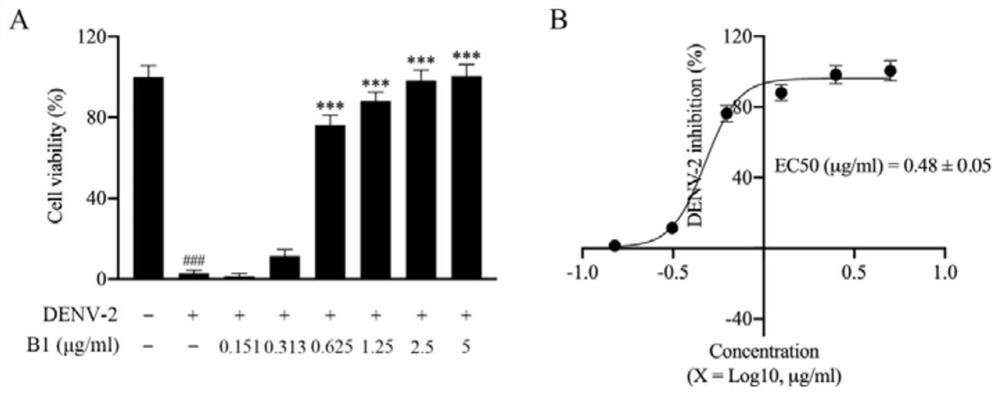 | 摘要: | 本发明涉及一种白蔹提取物及其制备方法和防治登革热Ⅱ型病毒感染的应用。本发明公开了一种具有抗登革热II型病毒感染的白蔹提取物,所述白蔹提取物先通过水提法获得白蔹水提物,然后通过高速逆流色谱分离后获得白蔹提取物。还公开了上述白蔹提取物在制备治疗或预防登革热Ⅱ型病毒引起的疾病的药物中的用途。本发明的白蔹提取物半数毒性浓度(CC 50 )为31.57μg/mL,能显著抑制2型登革病毒所诱导的细胞死亡,其半数最大效应浓度(EC 50 )为0.48μg/mL,选择指数SI是65.77,为低毒高效。 | ||||