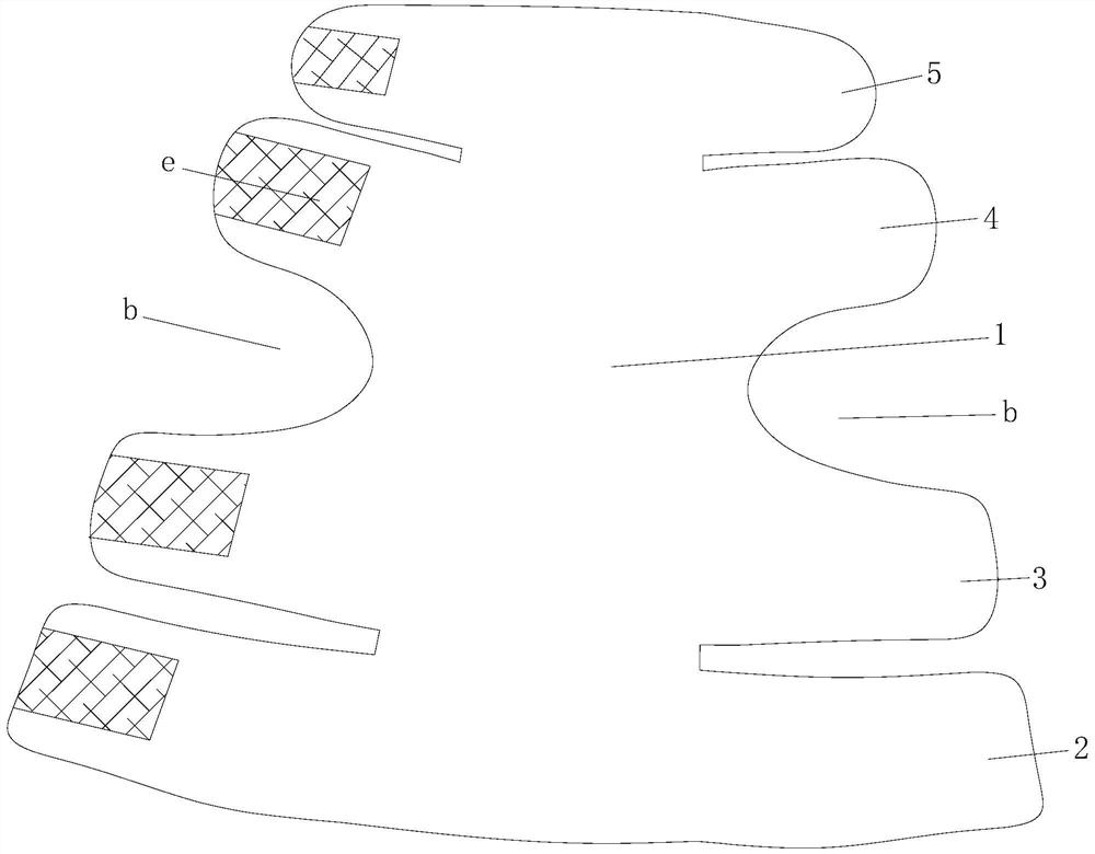 | 摘要: | 本实用新型公开了一种用于臀肌筋膜挛缩术后保持膝关节并拢的捆绑垫,包括长梯形垫体,所述长梯形垫体的每个长边均从近侧向远侧依次分布有一条第一大腿固定带、一条第二大腿固定带、一条第一小腿固定带和一条第二小腿固定带,长梯形垫体的两个长边上的第一大腿固定带、第二大腿固定带、第一小腿固定带和第二小腿固定带一一对应并且相互通过魔术贴结构可拆卸固定连接,相互固定的两条第二大腿固定带与相互固定的两条第一小腿固定带之间形成双膝盖暴露孔。本实用新型的用于臀肌筋膜挛缩术后保持膝关节并拢的捆绑垫操作方便,捆绑牢固不易走位,受力面积均匀,病人更舒适,可以很好保护皮肤,防止产生皮肤损伤。 | ||||