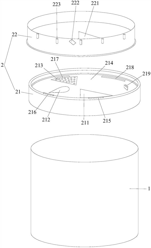 | 摘要: | 本实用新型公开了一种疫苗接种锐器浸泡装置,包括盒体和盒盖,所述盒盖包括固定盖和转动盖,固定盖可拆卸地固定在盒体上端,固定盖的顶面有围绕顶面中心分布的消毒液入口、锐器投入口、网孔状消毒液出口和无孔区域,转动盖旋转安装在固定盖上,转动盖上有在转动时可依次与消毒液入口、锐器投入口、网孔状消毒液出口和无孔区域对应的一缺口。本实用新型的疫苗接种锐器浸泡装置保证了工作人员的安全。 | ||||