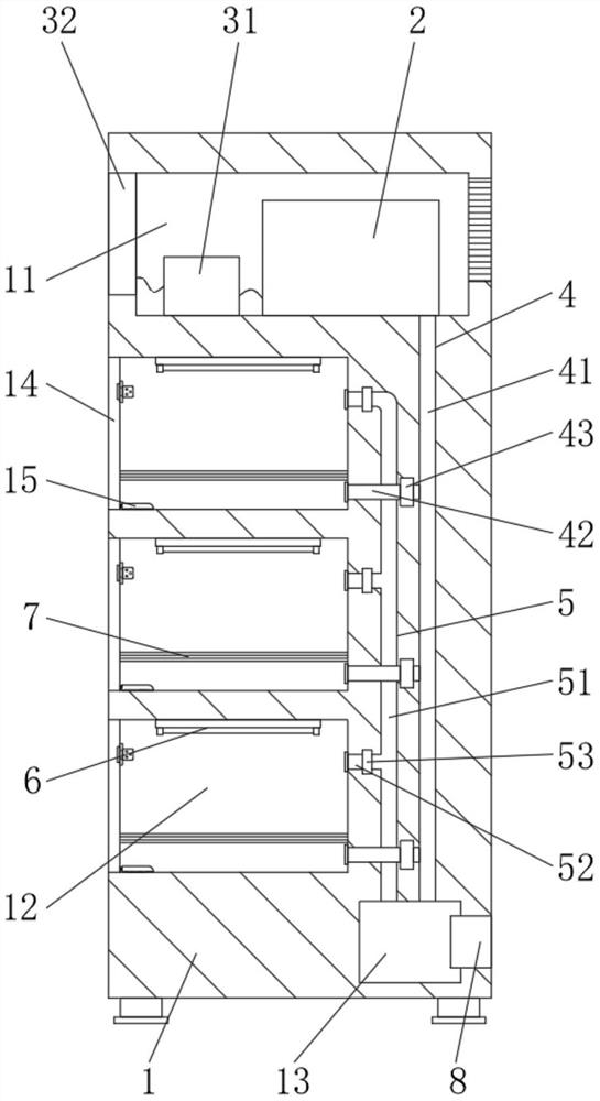 | 摘要: | 本实用新型公开了一种多功能医用鞋柜。一种多功能医用鞋柜,包括鞋柜本体,其中,在所述鞋柜本体的内部上方设有控制间,所述控制间内设有热风机和控制处理组件,在所述鞋柜本体的内部设有排气间和若干个收纳间,所述热风机通过热风管与所述收纳间、排气间连接在一起,以及,所述收纳间通过排气管与排气间连接在一起,在所述收纳间内装设有消毒灯,在所述排气间内设有能够连通外界大气的排气扇,所述热风机、消毒灯、排气扇均与控制处理组件连接在一起,在所述鞋柜本体的侧面设有雨伞架。本实用新型一种多功能医用鞋柜,使用方便,能够提高空间使用率并且杀菌效果好。 | ||||
