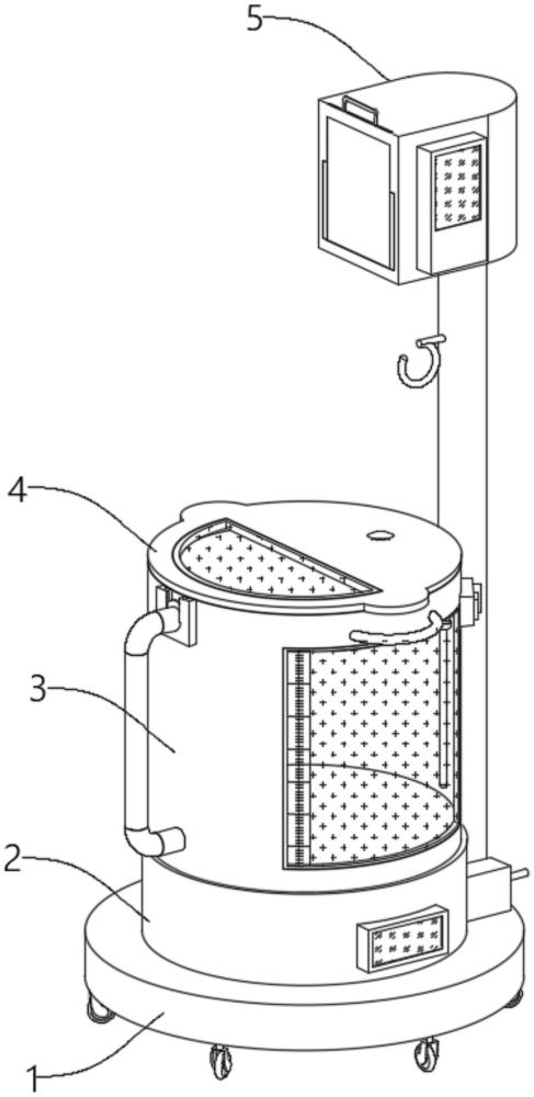 | 摘要: | 本实用新型涉及膀胱冲洗桶技术领域,具体为一种可加温报警的膀胱冲洗桶,包括便于移动的底座,底座上表面中心处设有称重仪,称重仪顶部插接有冲洗桶,冲洗桶顶部设有顶盖,底座上表面靠近右侧处设有立柱,立柱顶部设有加温组件;该可加温报警的膀胱冲洗桶,通过设置带有万向轮的底座,有助于整体灵活移动,称重仪安装有助于对冲洗桶中收集的尿液混合进行称重配合,在带有浮球传感器的液位计报警器配合下,实现对冲洗桶中存储的混合溶液高度进行持续警报监测配合,加温箱配合加温仪与加热棒,实现对输送溶液持续加热配合,减少低温对患者影响,避免医护人员时刻监督造成劳动力占用影响。 | ||||