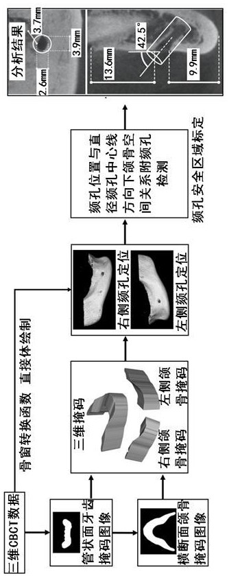 | 摘要: | 一种下颌颏孔手术安全区域自动标定方法,通过5步骤生成手术安全区域。本发明的有益效果如下:第一,自动生成包含颏孔的ROI区域来缩小数据处理范围,其中ROI通过分别对冠状面和横断面的投影图像进行分割后组合得到;第二,通过在体渲染的二维图像上进行颏孔检测,然后将检测得到的屏幕坐标变换到三维空间,极大的缩小了数据处理量,而且可非常容易地集成到现有处理软件系统中;第三,通过左颏孔的三维空间位置和右颏孔的三维空间位置,自动得到以颏孔为中心的手术安全区域标定。本发明能提高安全区域标定的速度和精确度,同时避免主观性引入误差。 | ||||