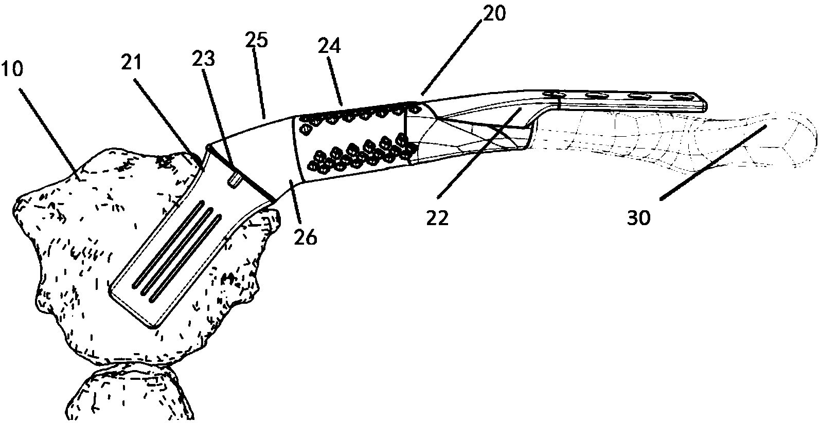 | 摘要: | 一种锁骨近端解剖型假体,设置有用于固定于胸骨柄髓腔的假体柄、用于安装于锁骨近端缺损处的假体主体、用于伸向锁骨残端的假体内固定钢板、支撑结构。该锁骨近端解剖型假体能有效地促进异骨体与胸骨、锁骨残端骨性连接;提高异骨体和胸骨关节融合,从而提高假体稳定性,增加假体的中长期寿命。一种锁骨近端解剖型假体的成型方法,上述的假体柄、假体主体、假体内固定钢板都使用医用铝合金3D打印一体成型。该成型方法能够快速定制出按照不同病人、不同锁骨近端骨缺损的骨骼匹配度极高的锁骨近端解剖型假体,以满足临床上锁骨近端重建的需求。 | ||||