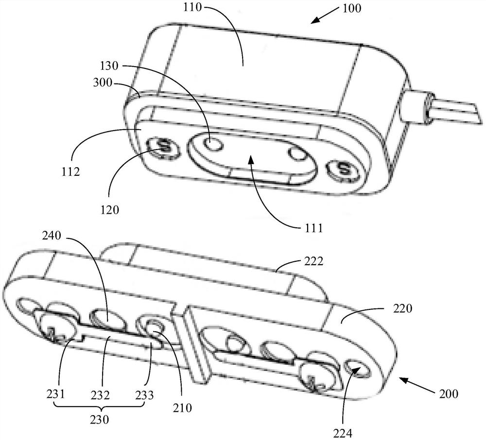 | 摘要: | 本实用新型公开一种电连接组件和除颤仪系统,其中,电连接组件包括第一电连接器和第二电连接器;第一电连接器包括第一壳体,第一磁吸件和第一触头设于第一壳体;第二电连接器包括可与第一壳体对接的第二壳体、第二触头及导电弹片;第二触头与第一触头相对设置并固定设于第二壳体;导电弹片包括固定部、连接部及自由部,固定部固定连接于第二壳体;连接部的两端分别连接固定部和自由部,连接部对应第一磁吸件设置;自由部位于第二触头背离第一触头的一侧并与第二触头间隔设置;导电弹片被第一磁吸件吸引时,自由部与第二触头接触。本实用新型技术方案在第一电连接器与第二电连接器未连接时,可避免用户误触电连接器而导致触电的情况。 | ||||