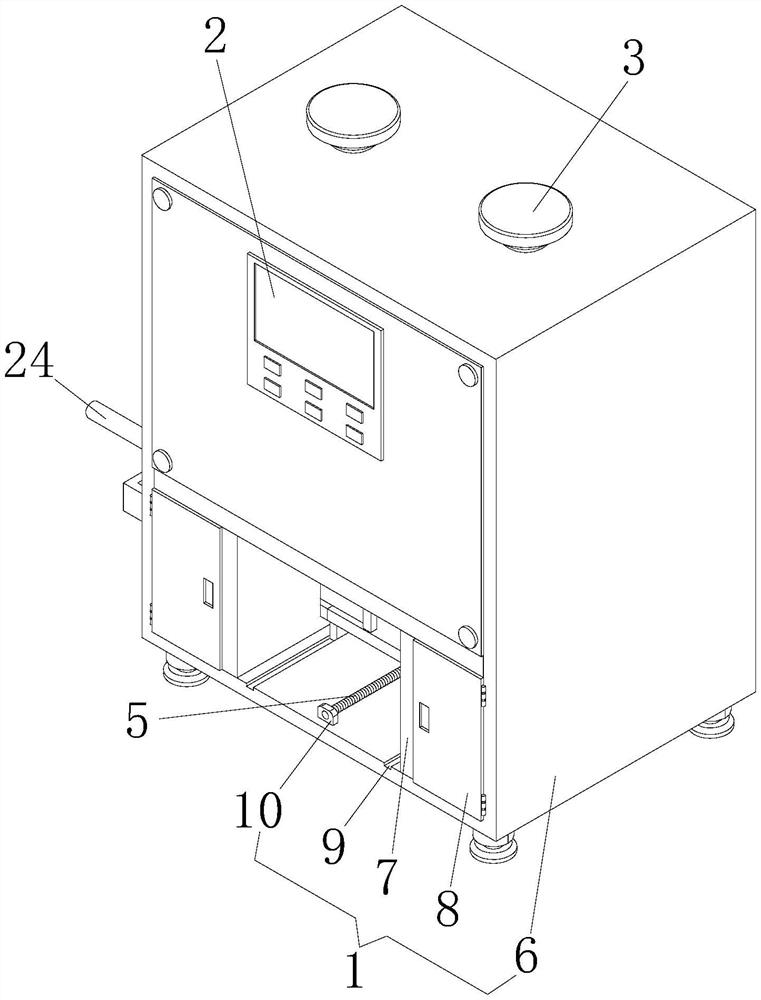 | 摘要: | 本实用新型公开了自动配比一次性使用酶液的装置,包括安装机构,所述安装机构后侧的底部通过螺栓连接有传动机构,所述安装机构内腔的顶部通过螺栓分别连接有酶液箱和水箱,酶液箱和水箱的底部连通有混合机构,所述安装机构包括安装箱,安装箱内腔的底部开设有滑槽。本实用新型通过设置安装机构、控制器、传动机构、安装箱、隔板、储存装置、竖板、酶液箱、水箱、混合机构、混合箱、第一电磁阀、搅拌杆、第二电磁阀、第三电磁阀、第二电机、放置架、第一电机、放置板和丝杆的配合使用,具备酶液和水配比效率更高,减轻了人员的工作强度,对酶液和水混合的更加彻底,提高配比质量,具备自动上杯功能的优点。 | ||||