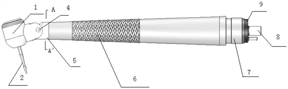 | 摘要: | 本发明提出一种可调节型口腔外科切割手机,包括头部、车针、颈部、操作手柄,车针安装在头部的底端,颈部一端与头部连接,另一端操作手柄固定连接,操作手柄端部设置有连接套,操作手柄内部设置有回气管、进气管和冷却管,回气管、进气管和冷却管伸出连接套外,头部通过旋转轴与颈部连接;颈部内设置有颈部进气孔、颈部回气孔和颈部冷却水孔,颈部进气孔、颈部回气孔和颈部冷却水孔分别与进气管、回气管和冷却管连通。 | ||||