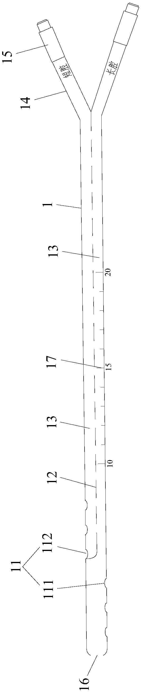 | 摘要: | 本实用新型公开了一种一次性使用无菌保留灌肠导管,包括导管本体,导管本体的前端开有侧孔,所述侧孔包括沿导管本体前后方向错位布置的一组前侧孔和一组后侧孔,导管本体内有将导管本体分隔为彼此独立的两条进液通道的隔板,两条进液通道分别与前侧孔、后侧孔连通,导管本体的后端分叉形成两个连接端,两个连接端分别与两个进液通道连通,各连接端装有可与注射器连接的接头,各接头具有被注射器按压使进液通道与注射器间相导通的第一状态以及具有拔除注射器后关闭进液通道的第二状态。本实用新型的一次性使用无菌保留灌肠导管压力易控制,给药稳定,使用方便。 | ||||