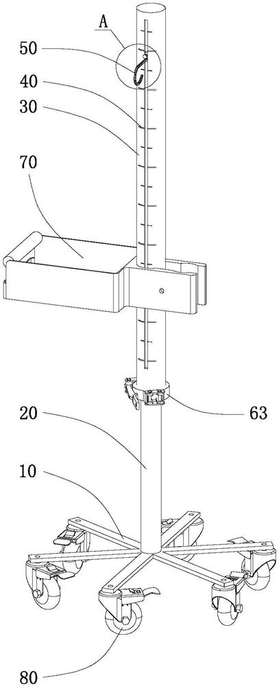 | 摘要: | 本申请提出一种灌肠用输液架,灌肠用输液架包括底座、下杆、上杆、刻度指示结构和挂钩,下杆安装在底座上,上杆安装在下杆上,上杆能够沿下杆移动,刻度指示结构沿上杆的长度方向布置在上杆的表面,挂钩安装在上杆上,挂钩能够沿上杆移动。灌肠时,首先调节上杆的高度,使刻度指示结构中的基准与患者的肛门高度平齐,随后依据刻度指示结构调节挂钩的高度,使灌肠液面与肛门的高度差达到预定值,之后对患者进行灌肠,通过设置可移动的上杆使得刻度指示结构的基准能够精确调节,通过设置可移动的挂钩使得灌肠液面的高度能够精确调节,灌肠用输液架能够提高灌肠袋高度控制的精确性。 | ||||