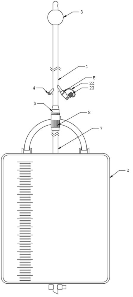 | 摘要: | 本实用新型属于临床医疗技术领域,尤其为一种自锁式导尿管连接系统,包括导尿管与集尿袋,所述导尿管上设置有气囊、充气接头、冲洗留取接头与连接头A,所述集尿袋上设置有连接管,而连接管上则设置有与连接头A相适配的连接头B,所述连接头A上开设有凹槽,所述连接头A外端设置有外螺纹,而其内端则设置有闭合引流通路的密封挡片,所述连接头B内端设置有插头、密封圈与内螺纹,所述连接头B中开设有移动槽,所述移动槽中设置有弹簧与顶块,且顶块通过拉杆与拉块相连,通过本实用新型新型在使用时,不仅便于连接、分离,同时,还可有效增强连接的紧密性,防止尿液泄露,给医护人员的护理工作提供便利。 | ||||
