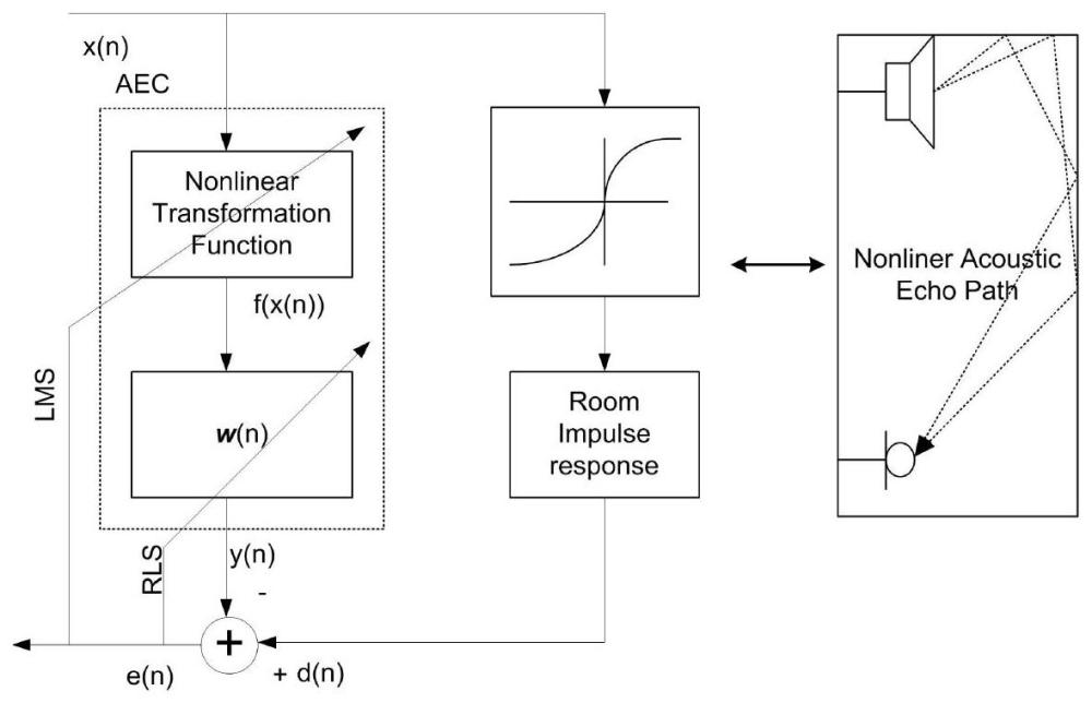 | 摘要: | 本申请公开了基于Sigmoid变换及RLS算法的非线性回波消除,包括以下步骤:获取回波信号,对所述信号进行处理,发生非线性形变;所述发生非线性形变的信号会被回波路径中的室内冲击响应干扰;通过自适应横向滤波器去除回波路径中室内冲击响应所造成的干扰,同时通过RLS算法更新横向滤波器中的系数向量,从而实现回波消除。本申请基于sigmoid函数的非线性变换,在此之后级联一个线性自适应滤波器。非线性变换及自适应滤波器的参数更新是通过LMS以及RLS两个算法完成。 | ||||