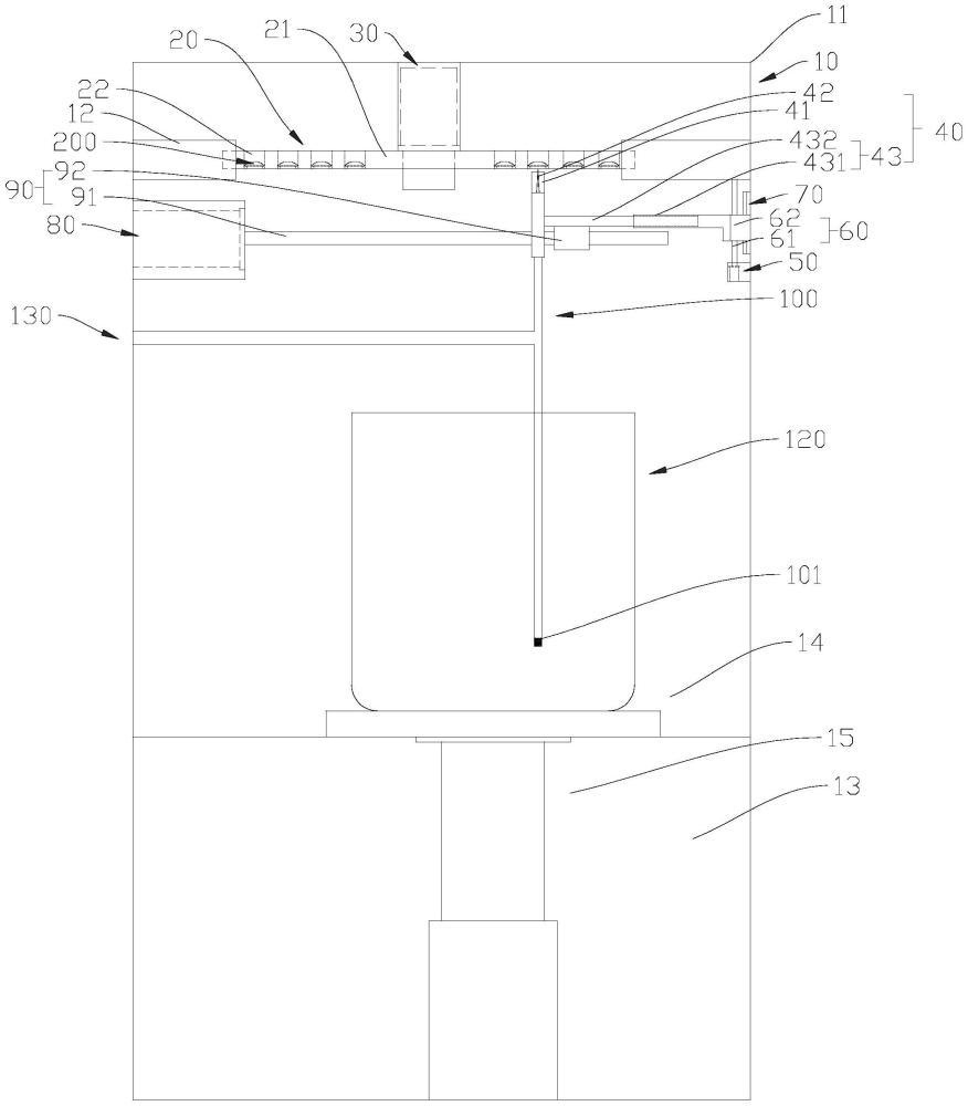 | 摘要: | 本发明涉及一种多酶清洗剂调配装置,包括机架、可转动设置在机架上供储存有清洗酶浓缩液的料袋放置的料盘、可往复运动地置在机架中以对放置于料盘上的料袋进行切割的切割组件、与切割组件连接以输出料袋中清洗酶浓缩液的下料管、可容置于机架中以收容配置好的清洗酶稀释液的接料装置、设置在机架中与接料装置连通的进水管;料盘上设有供料袋放置的多个工位;工位与料袋一一对应设置;切割组件与料盘相对设置,以通过朝工位方向往复运动切割料袋;下料管与切割组件和接料装置连通。该多酶清洗剂调配装置可实现自动调配清洗酶稀释液,进而可提高清洗酶稀释液的调配效率,并且可减少人工误差,提高调配精度。 | ||||