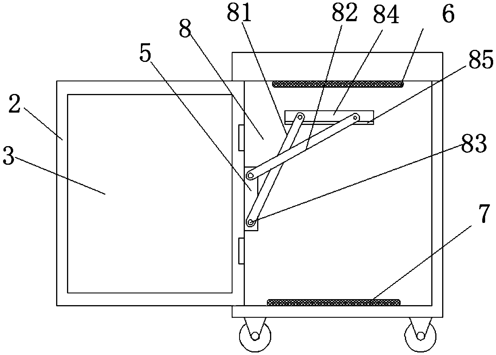 | 摘要: | 本实用新型公开了一种手术器械用消毒装置,包括箱体,所述箱体的正面转动连接有箱门,所述箱门的表面设有观察窗,所述箱体的顶部设有通风口,所述箱体的底部固定连接有万向轮,所述箱体的内壁固定连接有支撑块,所述箱体的内顶部固定连接有高温杀菌装置,所述箱体的内底部固定连接有紫外线照射灯,所述支撑块的一侧转动连接有翻转装置,所述翻转装置包括转动连接在支撑快上的连杆一和连杆二,所述连杆一的一端固定连接有驱动装置,所述驱动装置固定连接于支撑块,且驱动连杆一往复转动,所述连杆一和连杆二的另一端均转动连接有能够固定手术器械的托盘。本实用新型可实现自动循环消毒杀菌功能,节省了人力,提高了效率。 | ||||