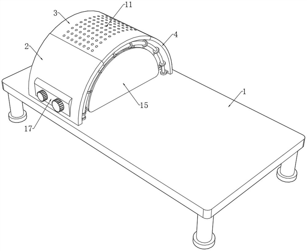 | 摘要: | 本实用新型公开了一种心电图检查辅助装置,属于医疗辅助设备领域,一种心电图检查辅助装置,包括第一弧形板,第一弧形板的内侧滑动连接有第二弧形板,第二弧形板的内侧滑动连接有第三弧形板,第一弧形板和第三弧形板之间固定有两组第一伸缩弧形杆,第一伸缩弧形杆的外侧滑动连接有安装框,安装框和第二弧形板相互靠近的一侧分别固定有第二磁铁和第一磁铁,且第一弧形板的内侧设置有与第一磁铁相对应的滑槽,安装框的内侧安装有加热组件,第一弧形板、第二弧形板和第三弧形板内侧的两端均安装有遮挡组件;它能够保障病人的隐私,避免尴尬,并为病人身体进行加热,防止病人因解开衣服而导致受凉,避免进一步加重病情。 | ||||