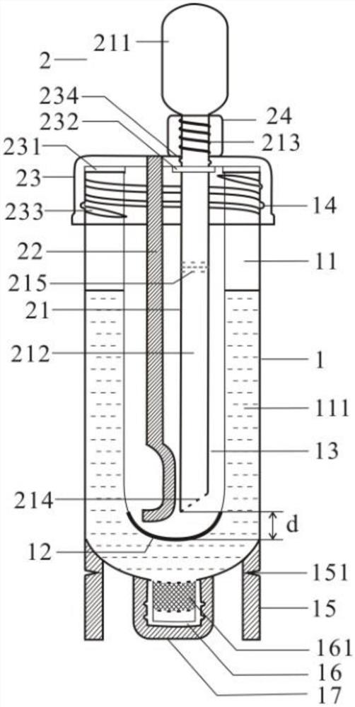 | 摘要: | 本实用新型公开了一种标本采集装置,其包括收集容器,收集容器内设有储液腔与标本腔,储液腔与标本腔之间通过间隔结构隔开,间隔结构包括在外力作用下可破裂的隔层;采集器,采集器包括采样件和可拆卸的第一盖体,采样件包括第一采样件,第一采样件的第一端固定在第一盖体上,第一采样件的第二端可伸入标本腔中并使隔层破裂。本实用新型通过在收集容器中设置标本腔和储液腔,采集器上的第一采样件采用后插入标本腔中,既可将标本放入标本腔中,也可使隔层破裂,从而储液腔与标本腔连通,储液腔中的保护液流入标本腔中,盖紧第一盖体后,即可实现对标本的良好保存。本实用新型简化了操作步骤,将标本的采集、混匀和保存一体化,提高临床工作效率。 | ||||