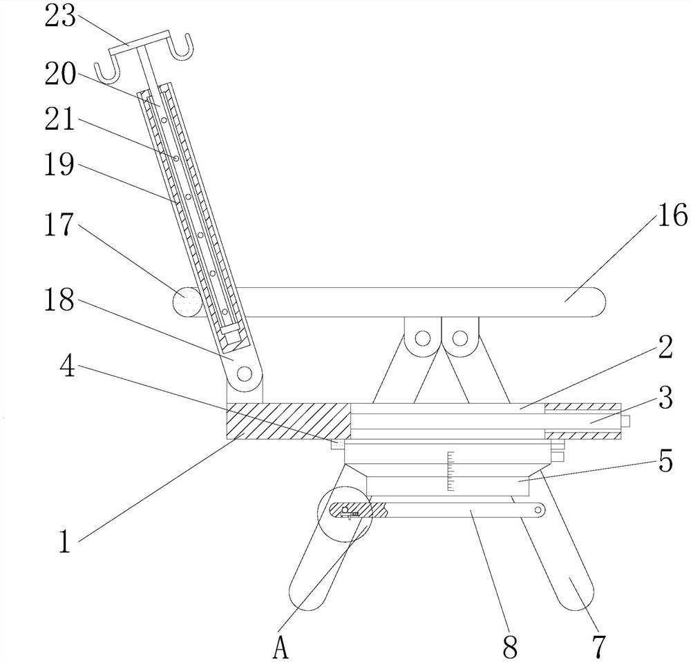 | 摘要: | 本实用新型公开了输液用折叠便盆椅,包括座板,所述座板的顶部开设有通孔,所述座板的右侧贯穿设置有隔板,所述隔板的左侧延伸至通孔的内腔并与通孔内腔的左侧接触,所述座板的底部固定连接有安装框,所述安装框的内腔活动连接有折叠便盆主体。本实用新型通过设置槽体、支撑腿、支撑杆、安装腔、弹簧、连接块、卡块、推拉块、卡槽、固定块、扶手、档杆、靠背、固定筒、活动杆、销孔、销杆和挂板的配合使用,具备便于收纳和便于调节输液高度的优点,解决了现有的输液用折叠便盆椅,椅子部分多为固定结构,占用空间较大,在不适用时,不便于进行收纳,不能够调节输液高度不可调节,不便于对不同身高人群进行输液的问题。 | ||||